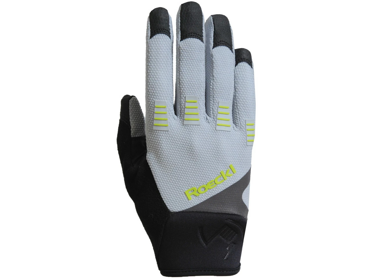 Der Mangfall Ganzfinger-Handschuh von Roeckl weiß bergauf wie bergab mit herausragendem Tragekomfort und Fingerspitzengefühl zu überzeugen. Wenn Du gerne den ganzen Tag im Sattel verbringst, auch vor bissigen Anstiegen nicht zurückschreckst und dich bei der Abfahrt gerne mal von Wurzelwerk oder verblockten Spitzkehren herausfordern lässt, dann ist der Mangfall Deine erste Wahl. Der geschmeidige, atmungsaktive ROECK-GRIP verhilft zu einem feinfühligen Grip am Lenker und lässt den Mangfall wie eine zweite Haut sitzen. Das feste, aber luftige Honeycomb Mesh an der Oberhand gibt ausreichend Halt auf technisch anspruchsvollen Passagen. Die integrierte XRD® Technology Polsterung verhindert vorzeitiges Ermüden der Hände. Für noch mehr Komfort sorgen das ergonomische Innenhanddesign, die gepolsterte Daumenbeuge, der angenehm eingefasste Innenhandriegel und der weiche Wischdaumen. Auch an der komfortablen Bedienung des Smartphones und GPS-Geräten wurde beim Mangfall nicht gespart. Deshalb sind alle Finger des Mangfall Touchscreen-kompatibel.